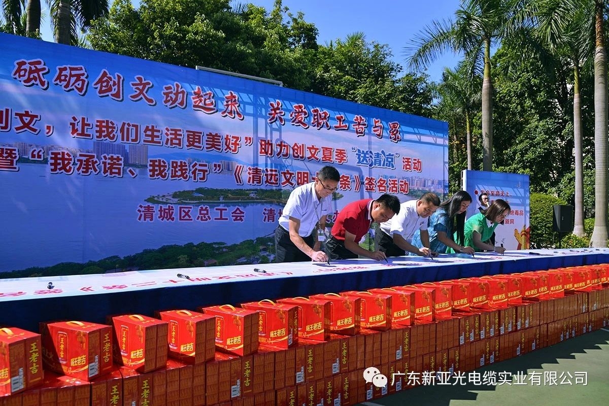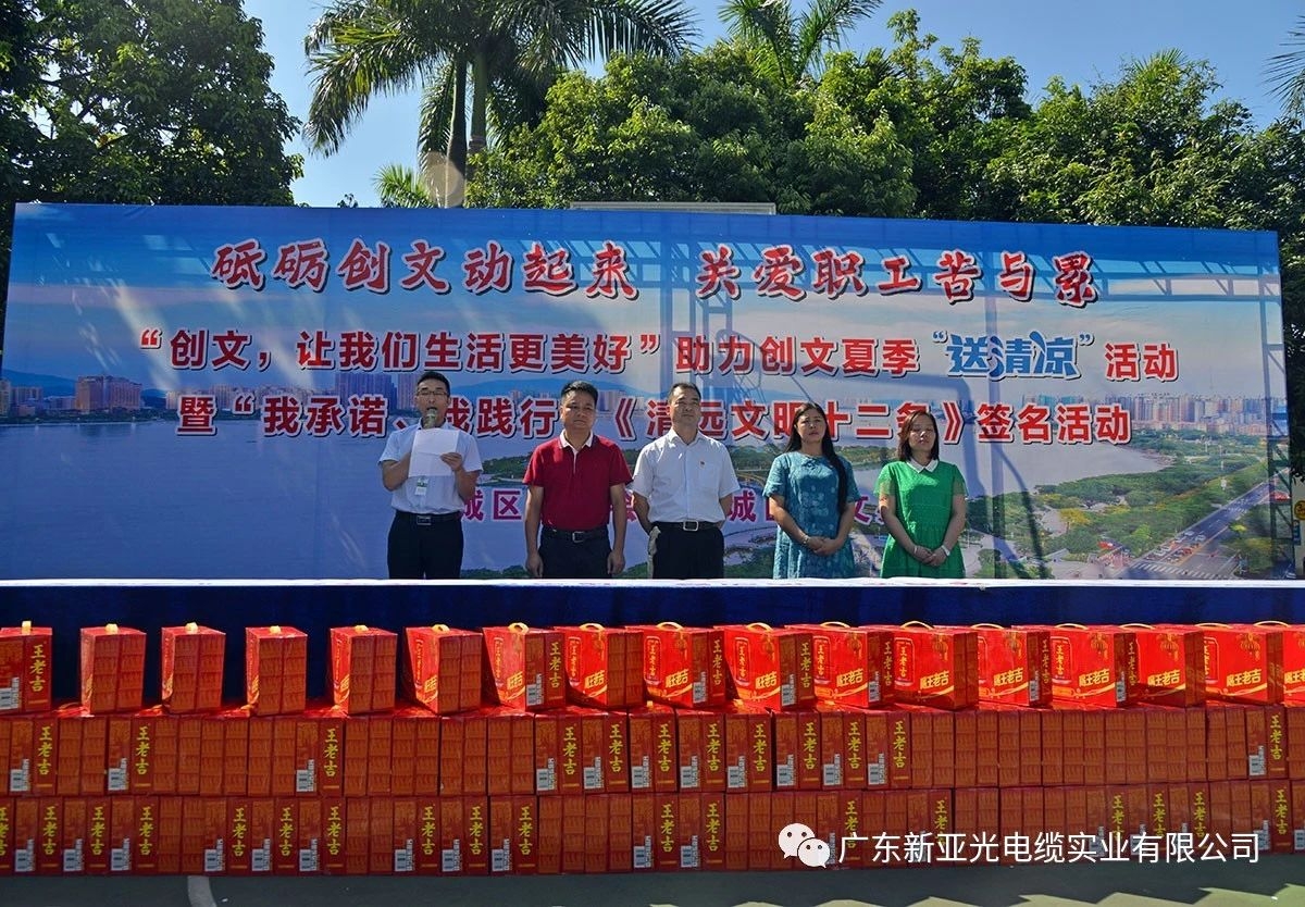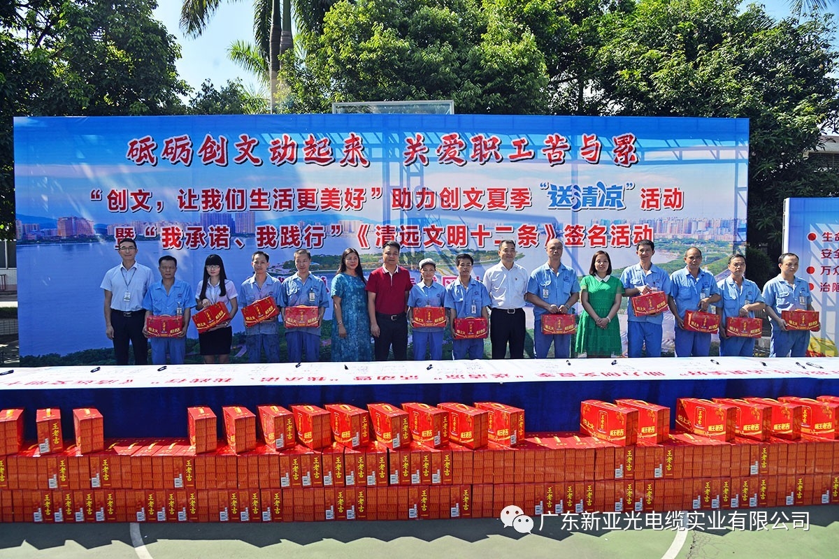 7月20日上午9時,區人大副主任、區總工會主席韋世彪,區文明辦常務副部長鐘振良,區總工會副主席陳靜,鳳城街道辦總工會主席黃蕾在我司開展“創文,讓我們生活更美好”助力創文夏季“送清涼”暨“我承諾、我踐行”《清遠文明十二條》簽名活動,為我司職工送上夏日的關懷與問候。