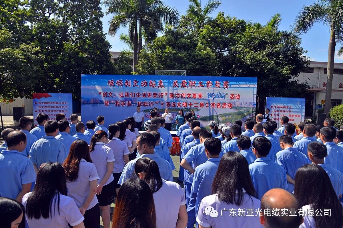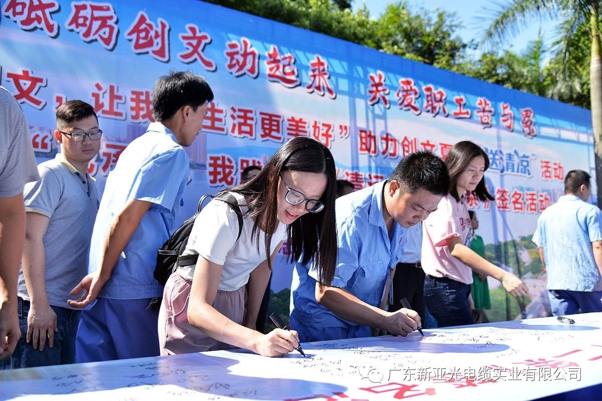 烈日炎炎,我司戰斗在一線的職工將增強自我保護意識,在高溫作業下,注意防暑降溫,確保群全體職工平安度夏。同時,我們將繼續以新亞為家,努力工作,為新亞電纜更廣闊的明天而努力!