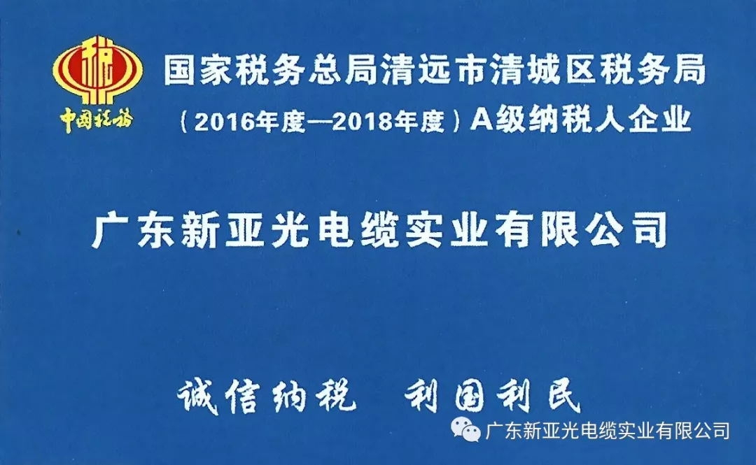 我司總經(jīng)理陳志輝先生作為“A級納稅人”企業(yè)代表人,他會后表示:“守法經(jīng)營、規(guī)范財務(wù)、依法納稅、正規(guī)運作,是我們企業(yè)生存發(fā)展應(yīng)盡的義務(wù)。能給國家增添稅收,為推進(jìn)社會主義市場經(jīng)濟高速、健全發(fā)展貢獻(xiàn)力量,參與國家經(jīng)濟建設(shè),是作為一個企業(yè)應(yīng)該履行的社會責(zé)任。廣東新亞光電纜實業(yè)有限公司也是得益于國家和政府的大力支持,才有這20多年來生機蓬勃的企業(yè)發(fā)展空間!”