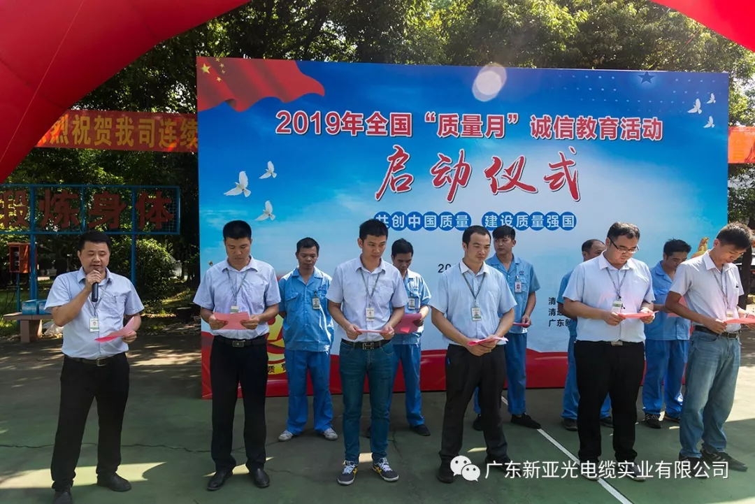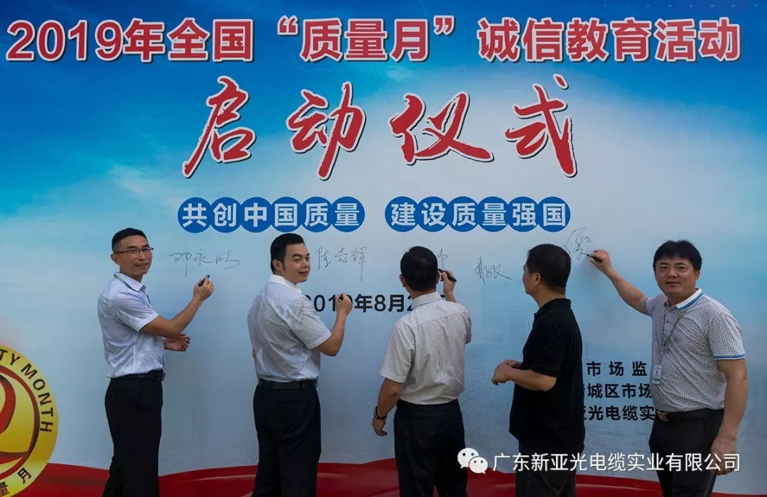 新亞電纜有幸成為“質量月”誠信教育活動啟動儀式的協辦方,并向社會做出質量誠信承諾,是政府主管部門對我們“以質量求生存,以質量求發展,以質量求效益,以誠信鑄品牌”理念的充分肯定。我司將一如既往秉持“一絲之差,質量分家”的理念,從細微之處著手質量管理,發揮員工價值,在質量誠信方面以身作則,為積極推進社會質量建設履行企業責任,為實現質量強市、質量強國貢獻力量。