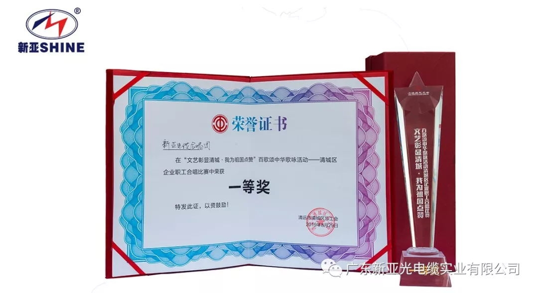 新亞電纜榮獲“百歌頌中華歌詠活動—清城區企業職工合唱比賽”第一名
