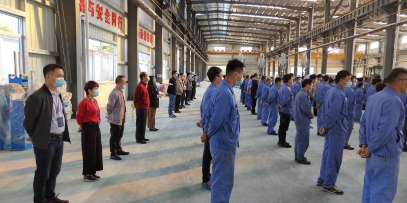 4月12日早8時許,廣東新亞光電纜實業有限公司生產系統所屬各部門員工在部門主管的帶領下,迎著朝陽,精神抖擻,踏著整齊的步伐,來到了新建成的管材車間一側的空地上,舉行2020年3月份安全生產流動紅黃旗交接儀式及月度安全生產動員大會。