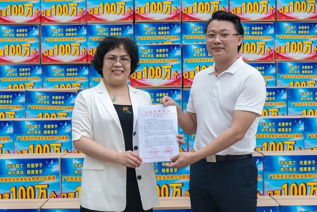 新亞電纜向清遠市教育系統(tǒng)敬贈口罩100萬個